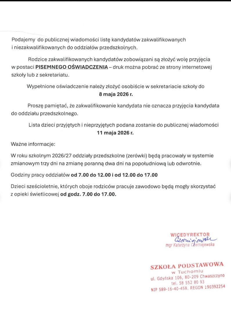 Lista kandydatów zakwalifikowanych i niezakwalifikowanych